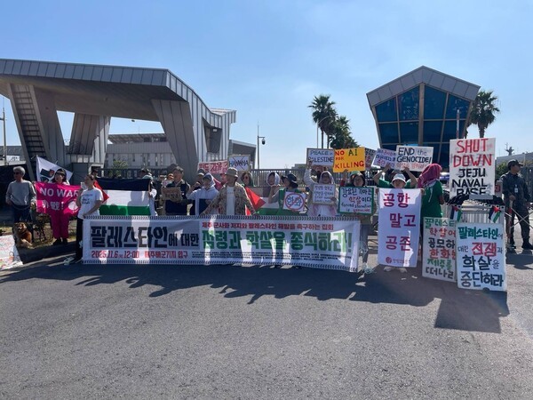 이날 집회 참가자들은 “팔레스타인과 제주, 한반도 평화가 연결되어 있다”며 “팔레스타인에 대한 점령과 학살을 종식하라”고 주장했다.