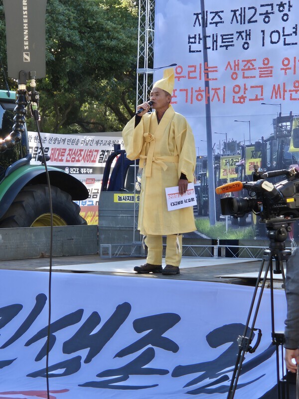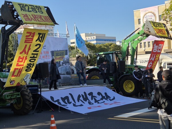 농민단체들은 “제2공항 에정지의 약 3분의 1인 52만평이 농지로, 국책사업 명목으로 강탈 되고 있다”면서 “철새도래지, 숨골, 자연동굴 등 천혜의 자연 생태계까지 파괴하는 2공항은 중단되어야 한다”고 목소리를 높혔다.