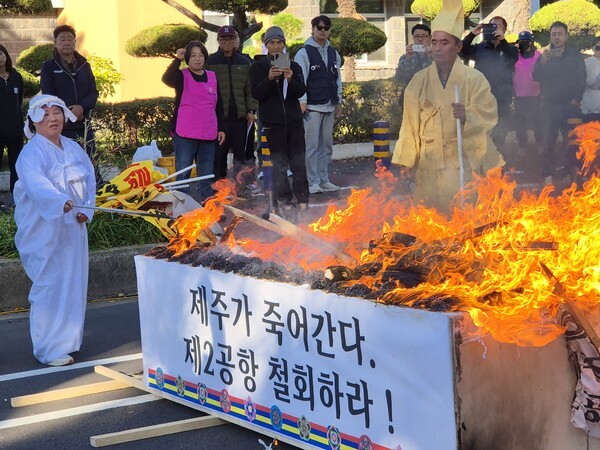 농민단체 회원들은 도청 앞 집회에서 상복을 입고 ‘제주가 죽어간다’는 구호를 외치기도 했으며, '제2공항 반대' 현수막을 단 상여를 도청 앞에서 불태우는 퍼포먼스 진행하는등 강한 투쟁의 의지를 보였다.